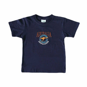 Introduce your little adventurer to Australian wildlife with this charming kids' t-shirt featuring a kangaroo design nestled within a circle. Crafted for comfort and durability, this navy tee is perfect for everyday wear, school outings, or casual playdates. The playful kangaroo graphic sparks curiosity about nature while the soft fabric keeps kids comfortable all day long. An ideal choice for young explorers who love animals and outdoor adventures.
